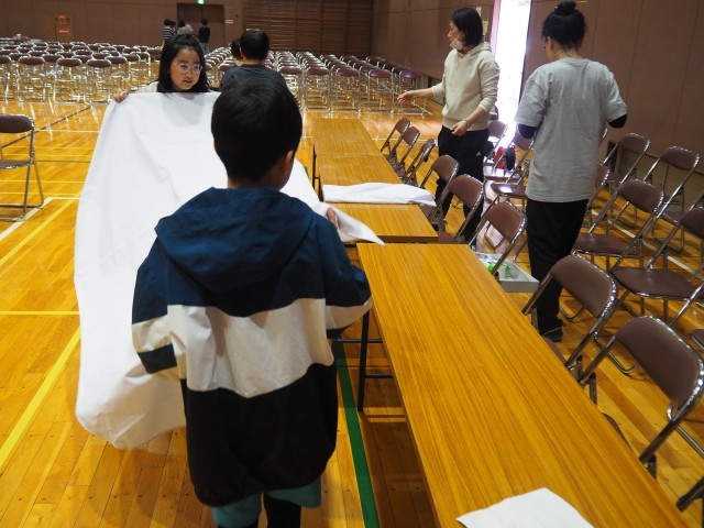 集中して準備を行う5年生。6年生からのバトンをしっかりと握りしめ、