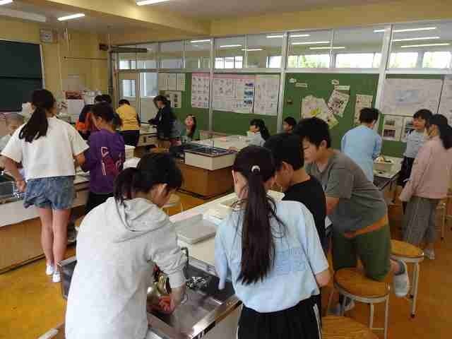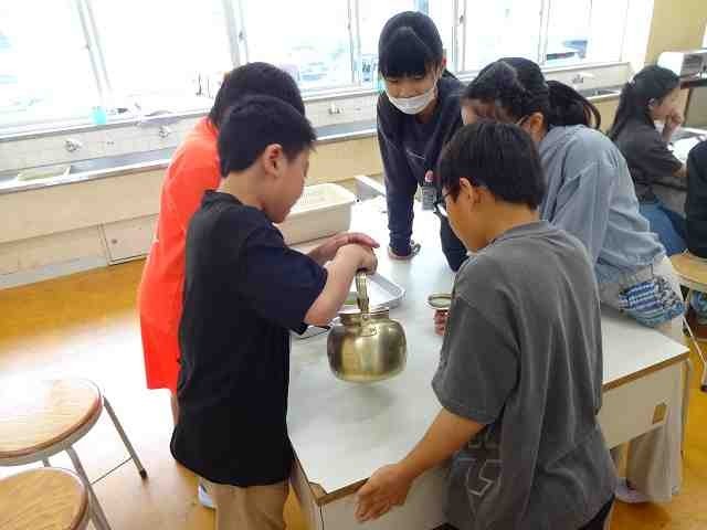 家庭科の学習で、初めての実習を行いました。ガスコンロの使い方を学習した後、お湯を沸かし煎茶を入れました。どのグループも協力して、準備や片付けを行うことができました。自分たちで入れたお茶は、とてもおいしかったようです。