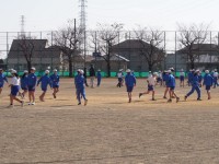 逃げろ!といっても、避難訓練ではありません。今日は今年度最後の朝体育で、全校鬼ごっこをしました。白帽子の子が先に逃げて、後ろで待っている赤帽子の子が鬼です。白帽子の子はつかまると赤帽子に変えて鬼になります。