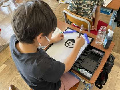 それぞれが自由に文字や絵、記号を書いて練習していました。