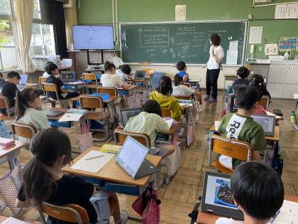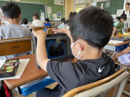ミニトマトの成長の様子を、chromebookのカメラで写真を撮り、見守っています。
