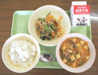本日のこんだてはごはん、牛乳、海藻サラダ、マーボー豆腐です。