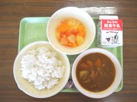 本日のこんだては麦ごはん、牛乳、アセロラゼリー、チキンカレーです。
