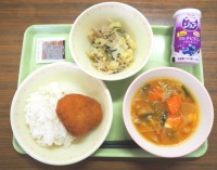 本日のこんだてはごはん、牛乳、パリパリサラダ、ジャガイモのそぼろ煮梅ゼリーです。...