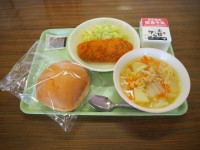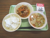 本日のこんだてはごはん、牛乳、豚肉とキャベツのみそ炒め、ワンタンスープです。野菜...