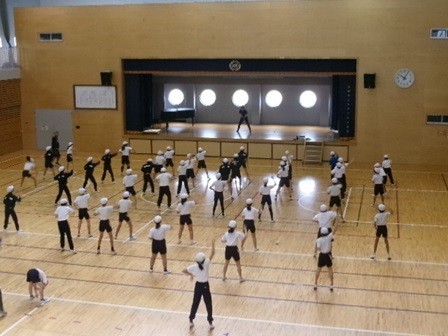5年生の体育の時間。運動会に向けて表現活動の練習が始まりました。6年生との合同練習が楽しみです。