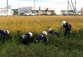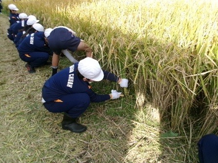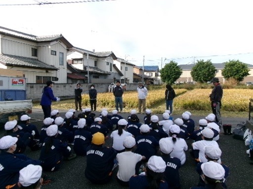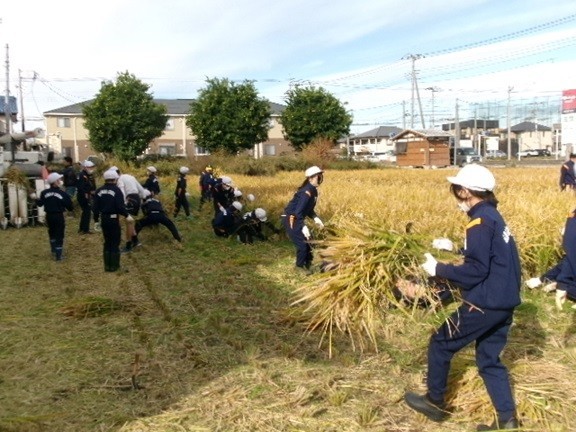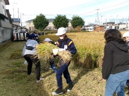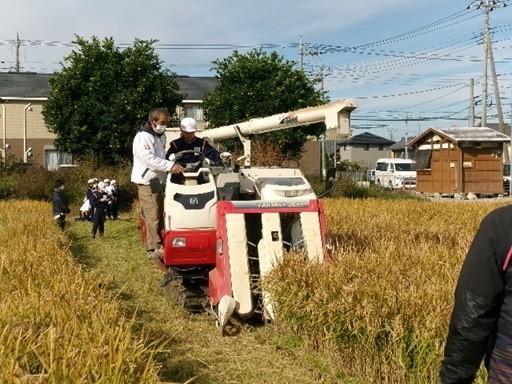 5年生は、6月に植えた稲が収穫の時期を迎えましたので、稲刈り体験活動をしました。普段、あまり使う機会のない鎌を使っての手刈りと、コンバインに乗っての機械刈りの両方を体験しました。手刈り体験は、どの児童も手際がよく予定時間よりも早く終了しました。活動中の児童の笑顔から楽しく学べた時間を過ごせたようです。ご協力いただきました地域の皆様には心より感謝申し上げます。ありがとうございました。