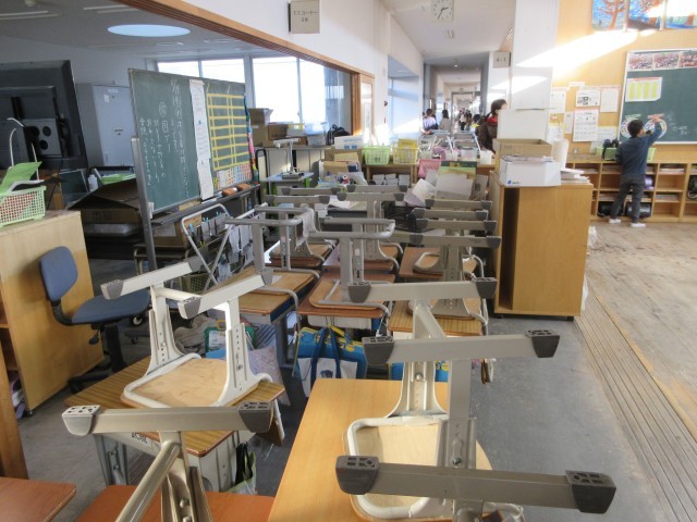 午後は全校で大掃除をしました。教室の机や椅子を廊下へ出し、普段できない場所もきれいにしました。子供たちが帰った後に、先生たちがワックスをかけて、ピカピカになりました。