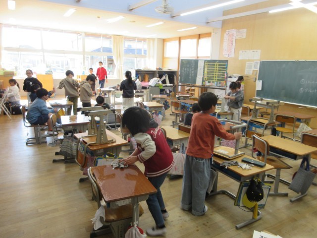 終業式の前日は、どのクラスも授業を終え、冬休みについての確認、2学期最後の思い出づくり、教室をきれいにすることなどに取り組んでいました。子供たちは冬休みを前に、真剣に話を聞いたり、友達と楽しく過ごしたりしていました。