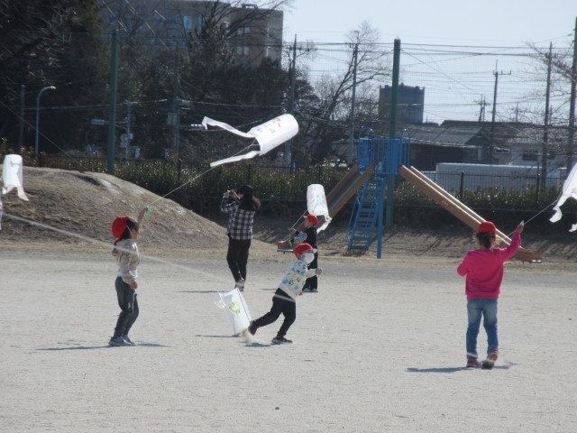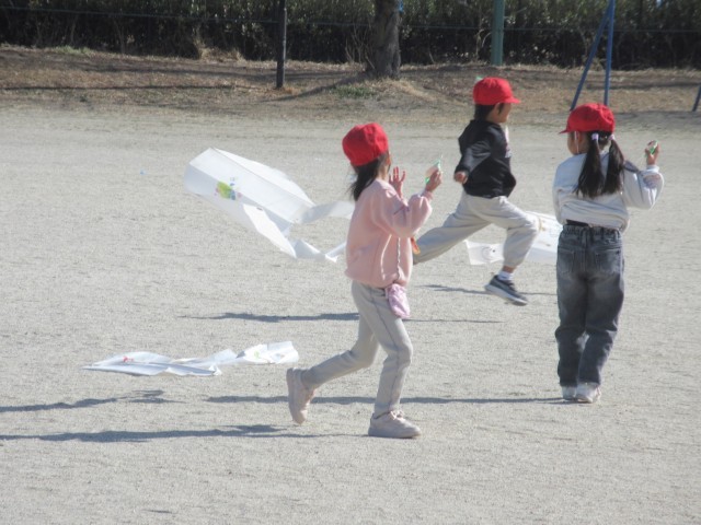 たこたこあがれ! 公開日 2026/01/28 更新日 2026/01/28 お知らせ 校庭で1年生が凧揚げをしました。生活科の時間に自分たちで好きな絵を描いて作った凧です。凧がよくあがるように、校庭を走り回っていました。「あがった!」と喜んでいるうちに凧が落ちて、また走ってを繰り返して、とても楽しそうでした。 +2