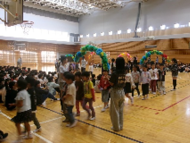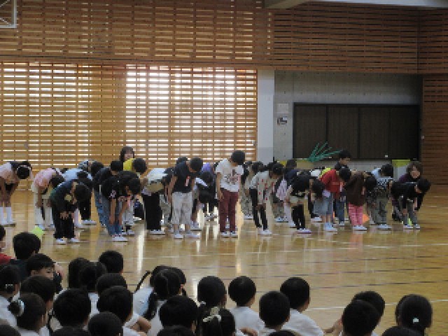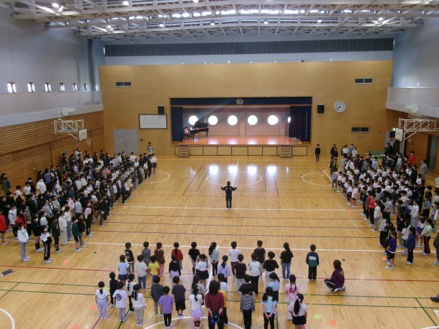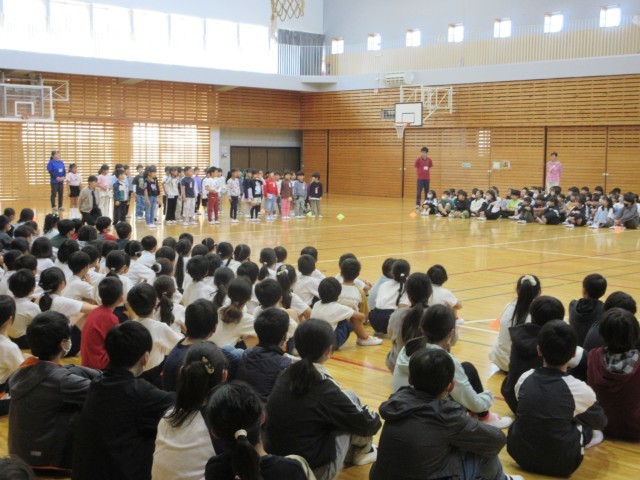 1年生を迎える会 公開日 2026/04/16 更新日 2026/04/16 学校紹介 今年度、初めて1年生から6年生が体育館に集まりました。全員で校歌を歌い、2年生以上の各学年から学校の紹介メッセージが送られました。1年生からもお礼の言葉が伝えられました。アーチをくぐる1年生は嬉しそうでした。準備や進行を担当した児童会本部の子どもたちも頑張りました。 +4
