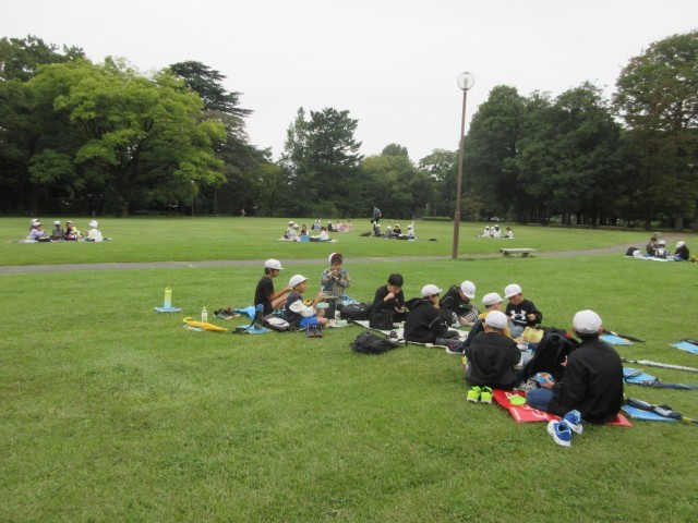 見学後は曇り空の下、歴史博物館前の広い芝生でお弁当タイムです。友達と一緒にお弁当...