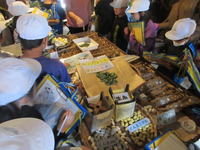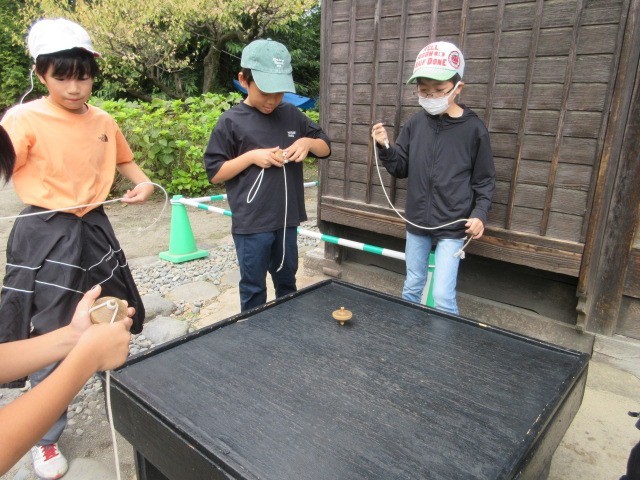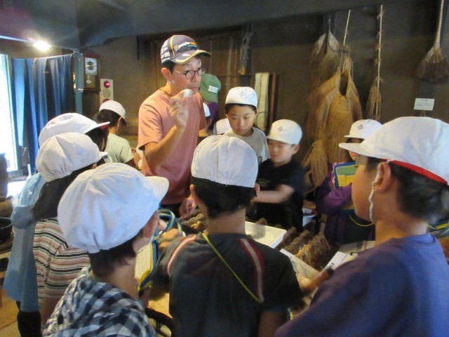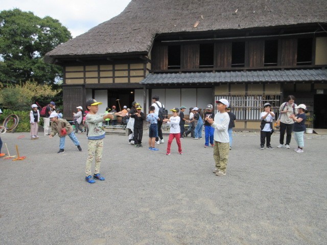 クラスごとに、「昔遊び」、「かやぶき民家見学」、「要蚕のお話」の
