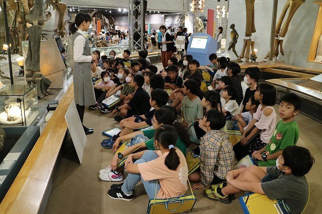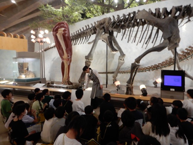 恐竜についてお話していただきました。カマラサウルスの実物骨格を見ながら、