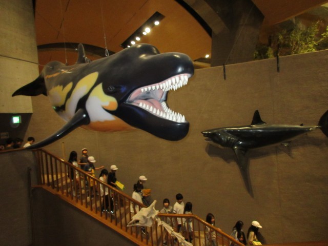 自然史博物館に到着して集合写真を撮った後、2グループに分かれて解説員さんから
