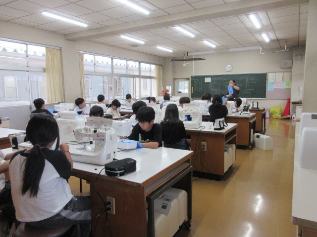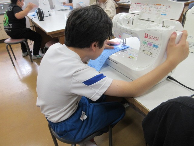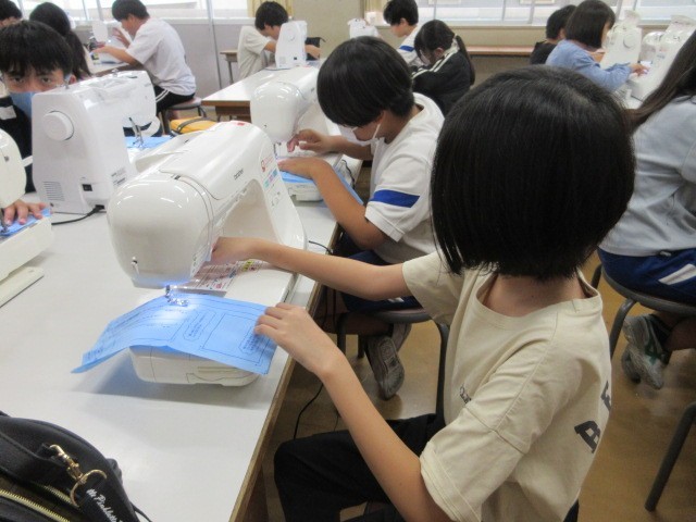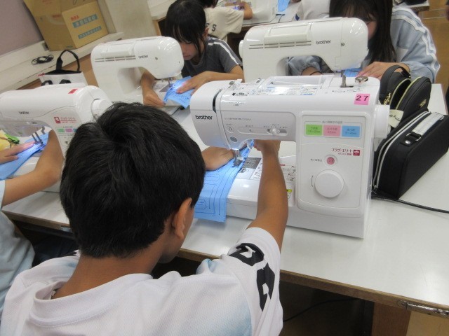 みんな、線に沿ってまっすぐ縫えるように、慎重に布を送っています。