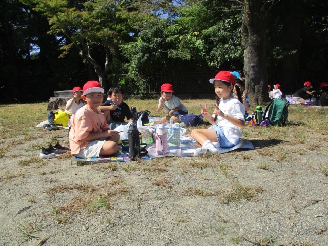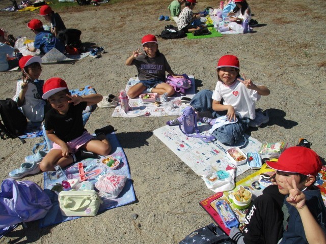 みんなでお家の人が準備してくれたおいしそうなお弁当を食べました。