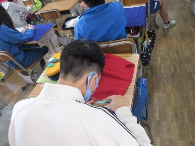 チャコペンシルで2Cmのところに印をつけて、2枚の布を重ねて