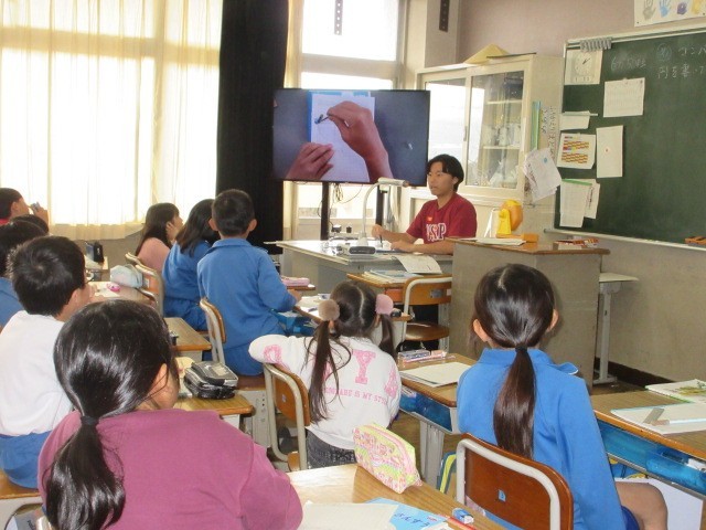 TVに写る先生の手元をよく見て、かき方のポイントを確認して