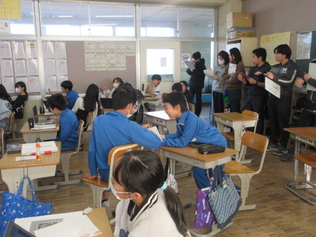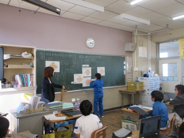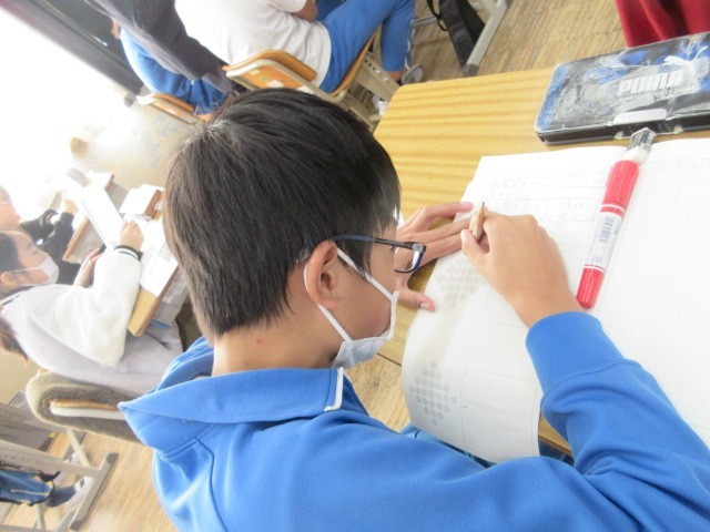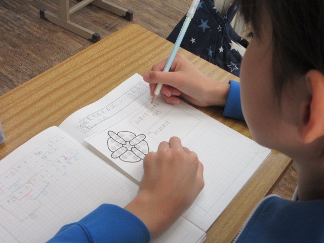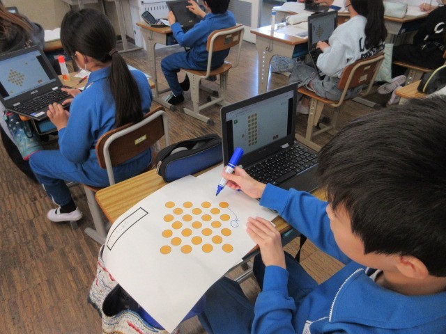 ワークシートに書き表したり、タブレット使って石を動かしたりして