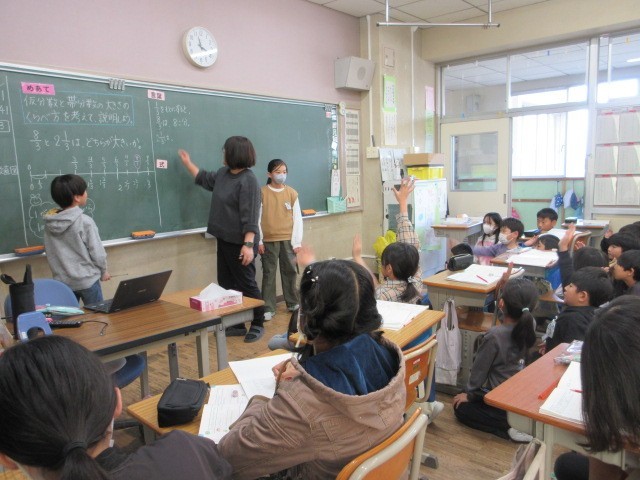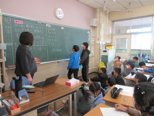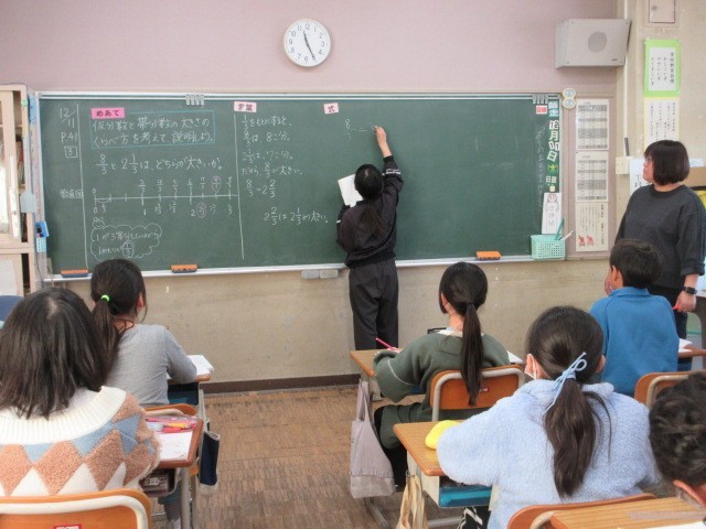 数直線を使って仮分数と帯分数の大きさを比べて、