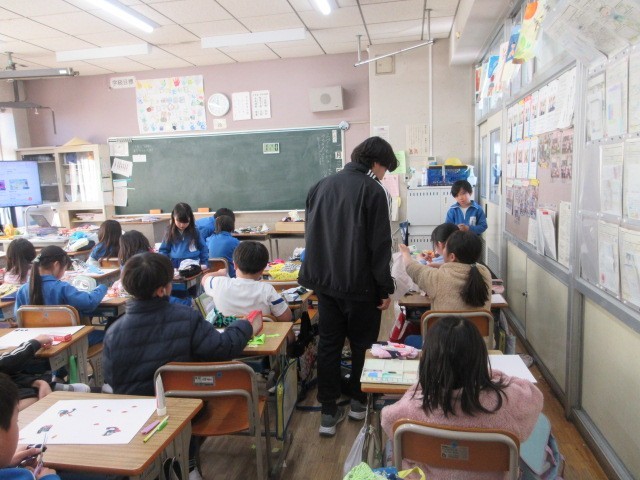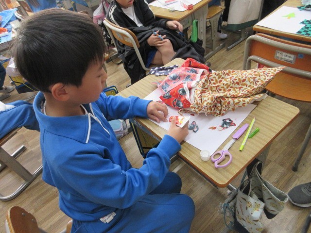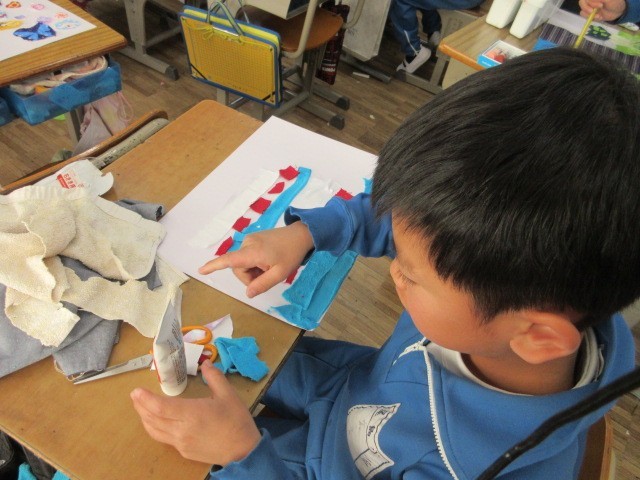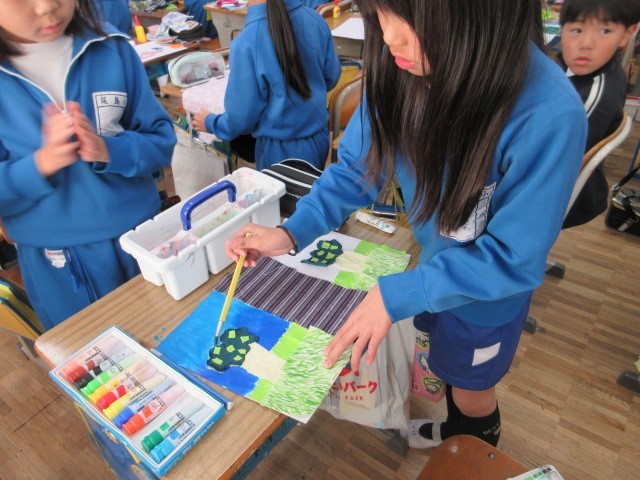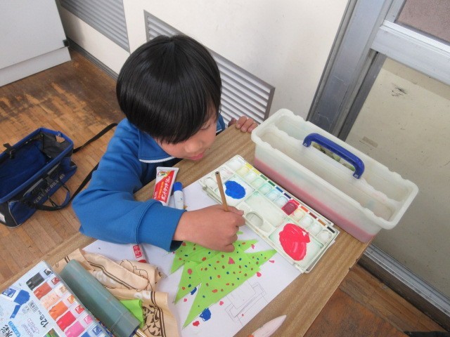 絵の具をで色をつけたりして色とりどりの素敵な作品が仕上がっています。