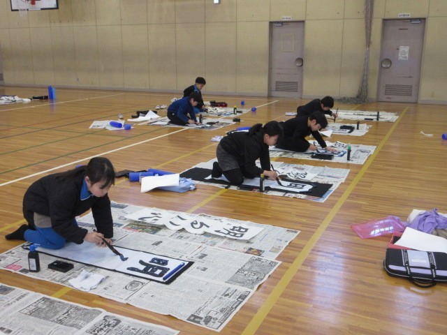 どの子ものびのびと元気な文字で「明るい心」と書きました。