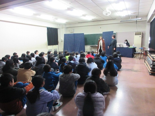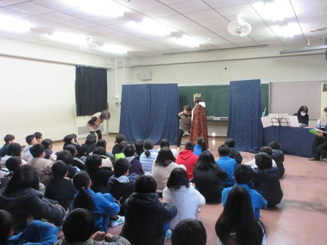 伴奏あり歌ありの迫真の演技に5年生も真剣に見入っています。