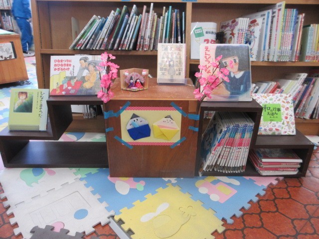 図書室には一足先に3月の装いです。