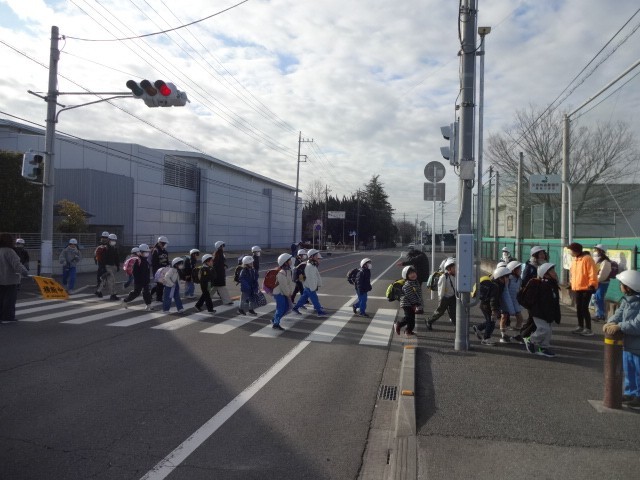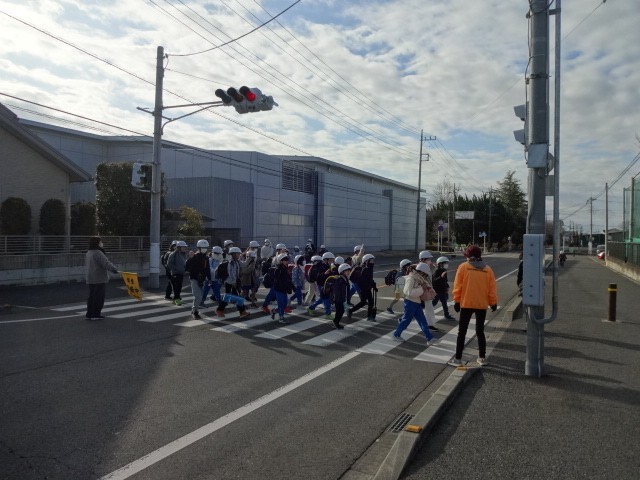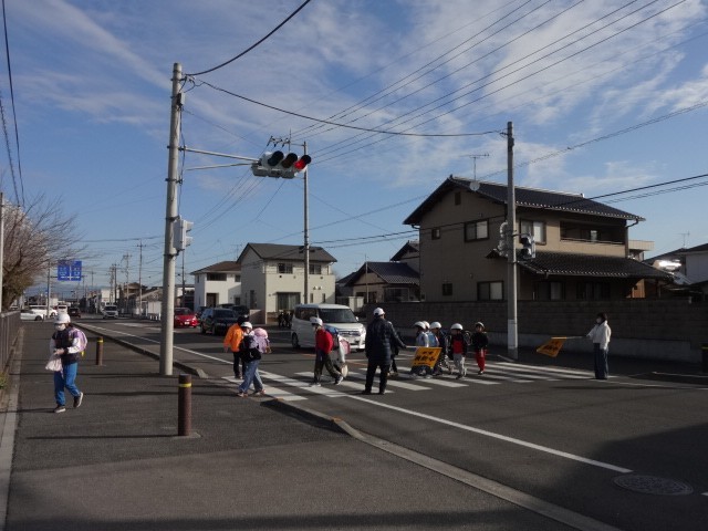 中学生のさわやかなあいさつに、尾島小のよいこも元気なあいさつで応えました。
