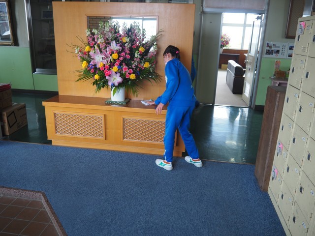 尾島小の子どもたちは掃除の時間もしっかりと取り組みます。