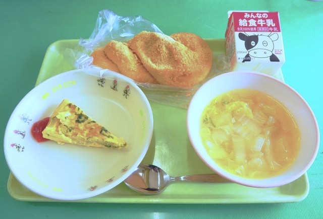 4/9の給食 公開日 2026/04/09 更新日 2026/04/09 お知らせ 本日の献立はきなこ揚げパン、牛乳、具だくさんオムレツ、ABCスープです。きなこ揚げパンは令和7年度「3の1」と「4の1」のリクエストメニューで、ABCスープは令和7年度「1の1」のりクエストメニューです。