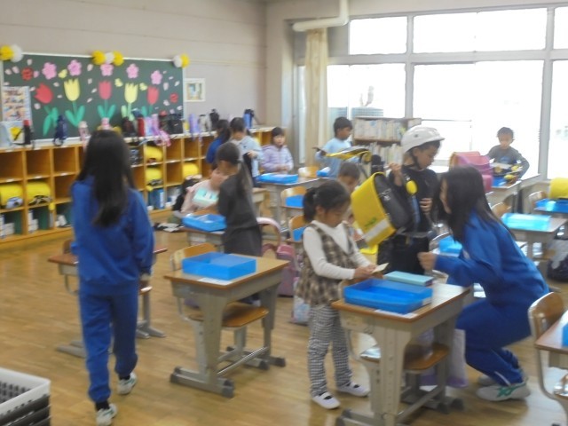 6年生がお手伝い 公開日 2026/04/14 更新日 2026/04/14 お知らせ 入学式からおよそ1週間。1年生も元気に登校し、授業も少しずつ始まりました。最初、慣れない1年生のために、6年生がお手伝いをしています。