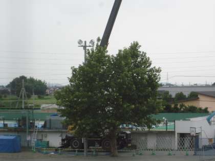 今日も大きなクレーン車が入り、板状の資材を敷き詰めていました。