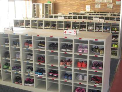 児童玄関の下駄箱に再びみんなの靴が集まりました。