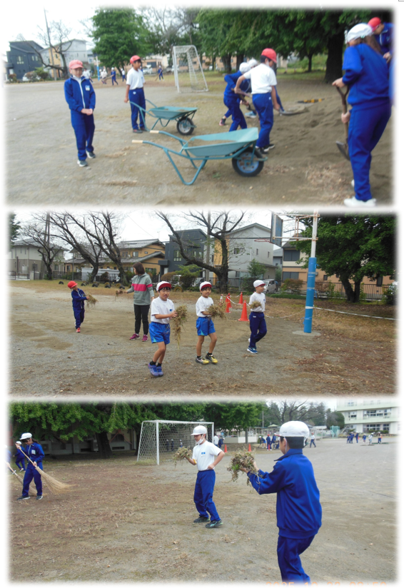 校庭に砂が敷かれたので 活動しやすい校庭になりました