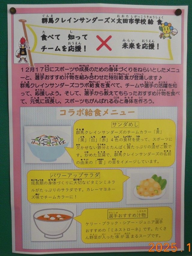 群馬クレインサンダースとコラボすることによって 実施する給食