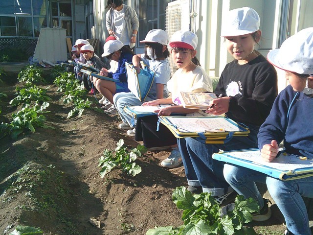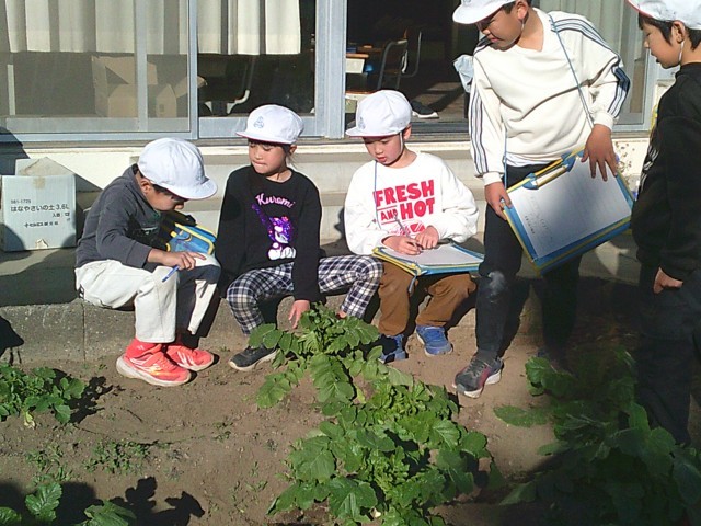 「大根が見える!」「こっちの方が大きいよ!」と楽しく観察していました。