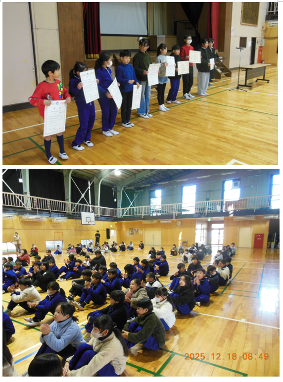 表彰を受ける子たちは 緊張感がありながらも笑顔でよい姿勢でした
