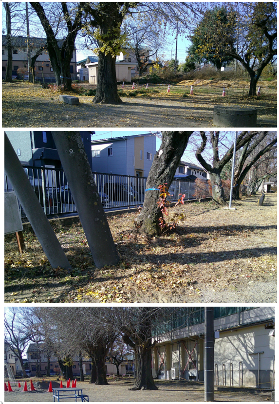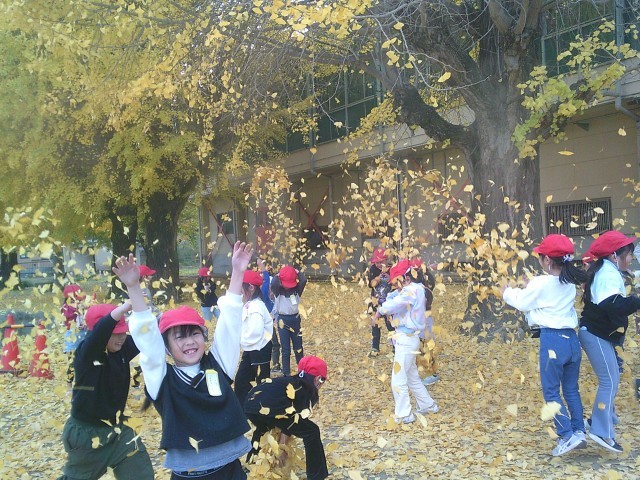 11月下旬 1年生が落ち葉遊びをした後も 校庭はいちょうの葉で一面黄色でしたが
