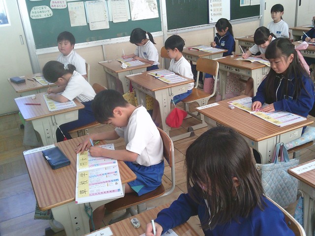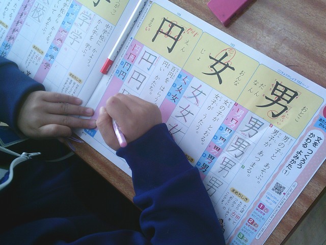「新しい漢字やったー!」前向きな姿が素敵です。