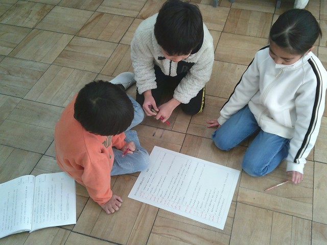 グループに分かれて、音読の仕方を工夫したり、動きを考えたりして、楽しく活動しています。