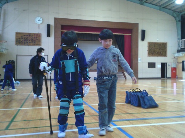 本日は、桐生大学の講師の方々にお越しいただいて、高齢者疑似体験を行いました。子どもたちは足や手に重りを付け、ゴーグルをつけ体の動かしにくさを体験しました。体験後には「困っている方がいたら助けたい」という声が多く聞かれ、周囲の人の気持ちを考えて行動しようとする意識が高まった、貴重な経験になりました。