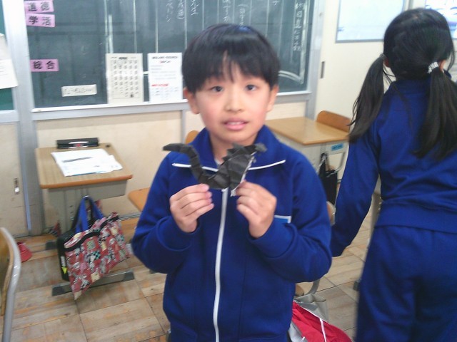 20分休みに児童が企画して、クイズ大会を行いました!とても盛り上がり、クラスで楽しく遊ぶことができました。なんと参加賞があり、全員が手の込んだ素晴らしい折り紙の作品をもらうことができ、とてもハッピーな会でした。