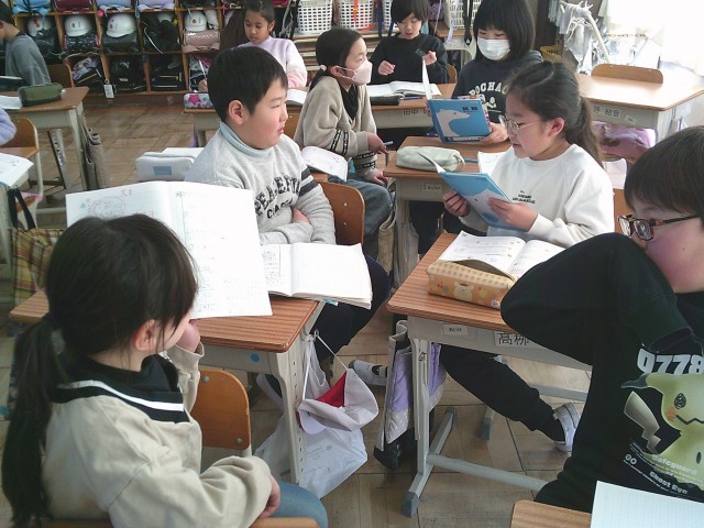 自分の考えを友達に伝えて、学び合いをしています。
