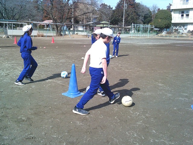 ゲーム形式でドリブル練習をしました。