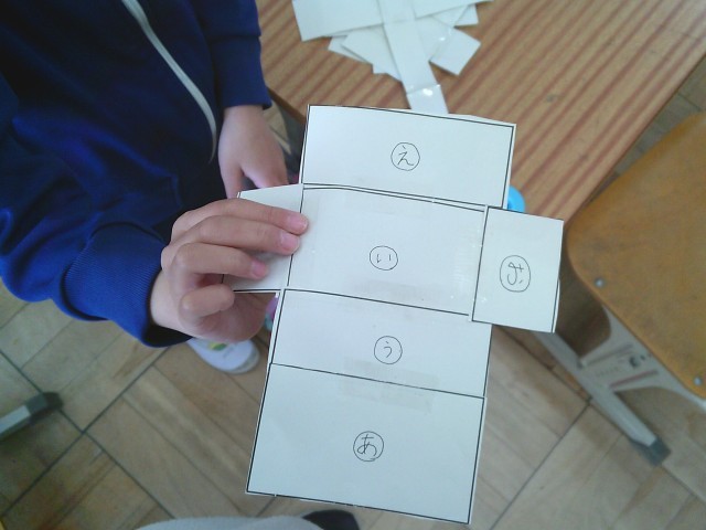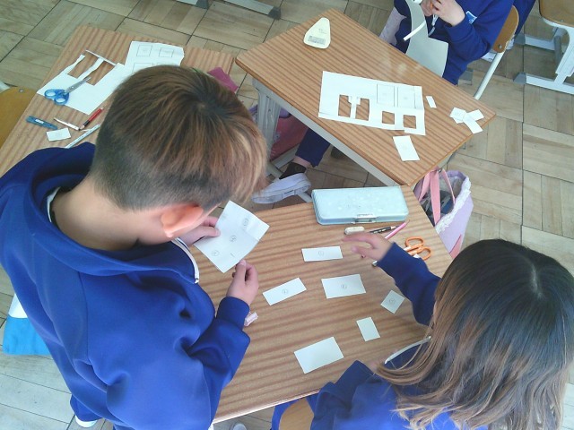 算数の勉強では、箱の形を調べています。