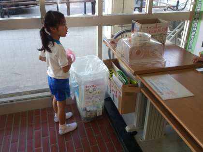 木曜はリサイクルの日。空き缶やボトルキャップなどを持ってきてくれてありがとうございます。ボトルキャップについては、10月8日に学校表彰を受けます(後日紹介します。)。