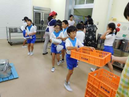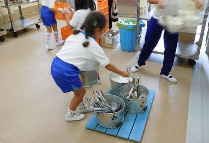給食の準備や最後の片付けなど、給食委員ががんばってくれています。
