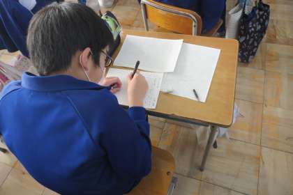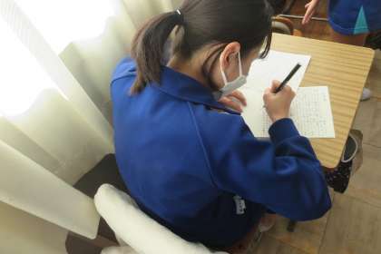 写真の6年生が書いているのは、卒業文集です。自分の将来の夢や思い出、詩や絵など、残したいことを書いていました。その他、クラスでテーマを決めて書くページもあり、頑張っています。卒業アルバムと文集で思い出の1冊になります。卒業文集を書くと、卒業がぐんと近くに感じてきます。